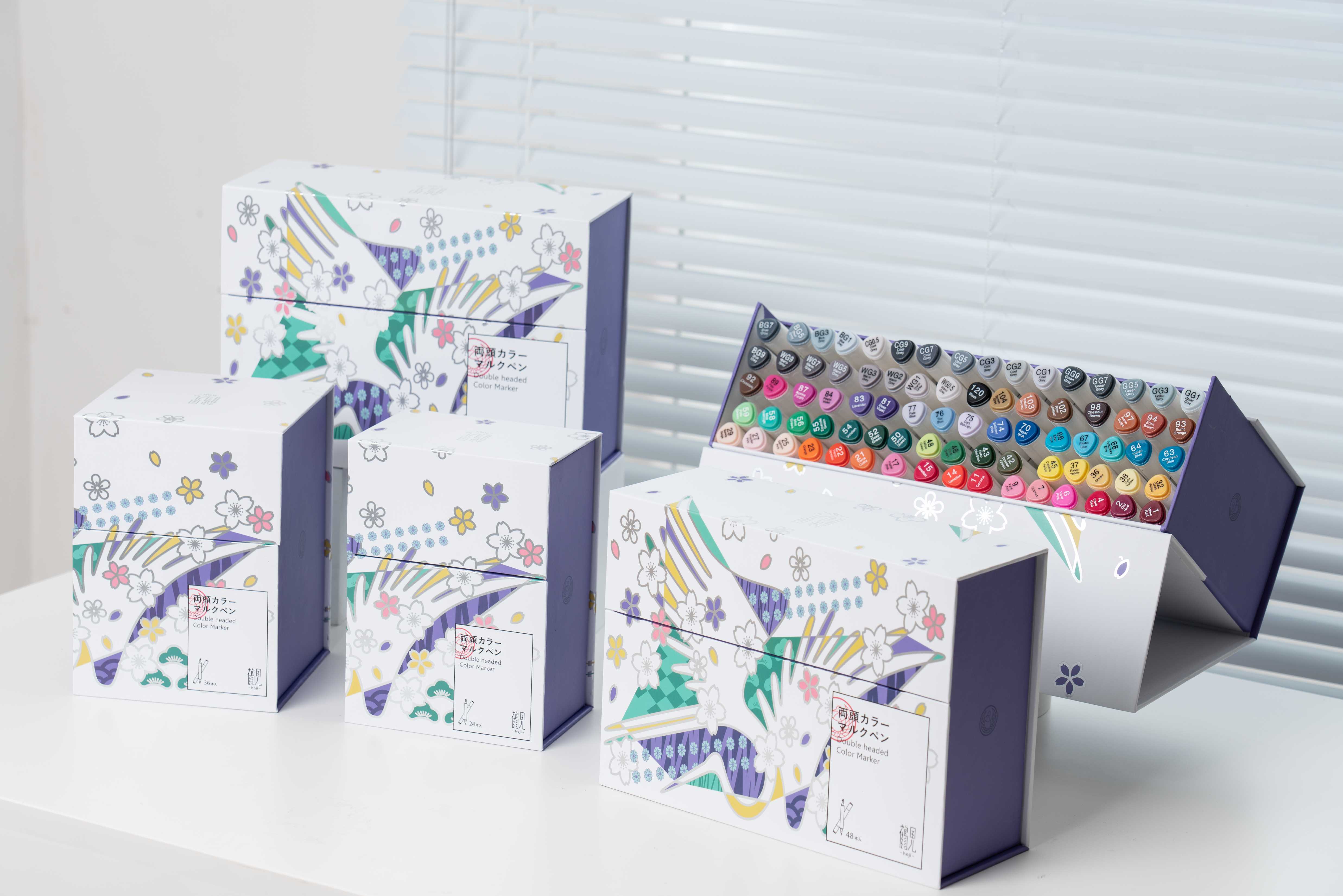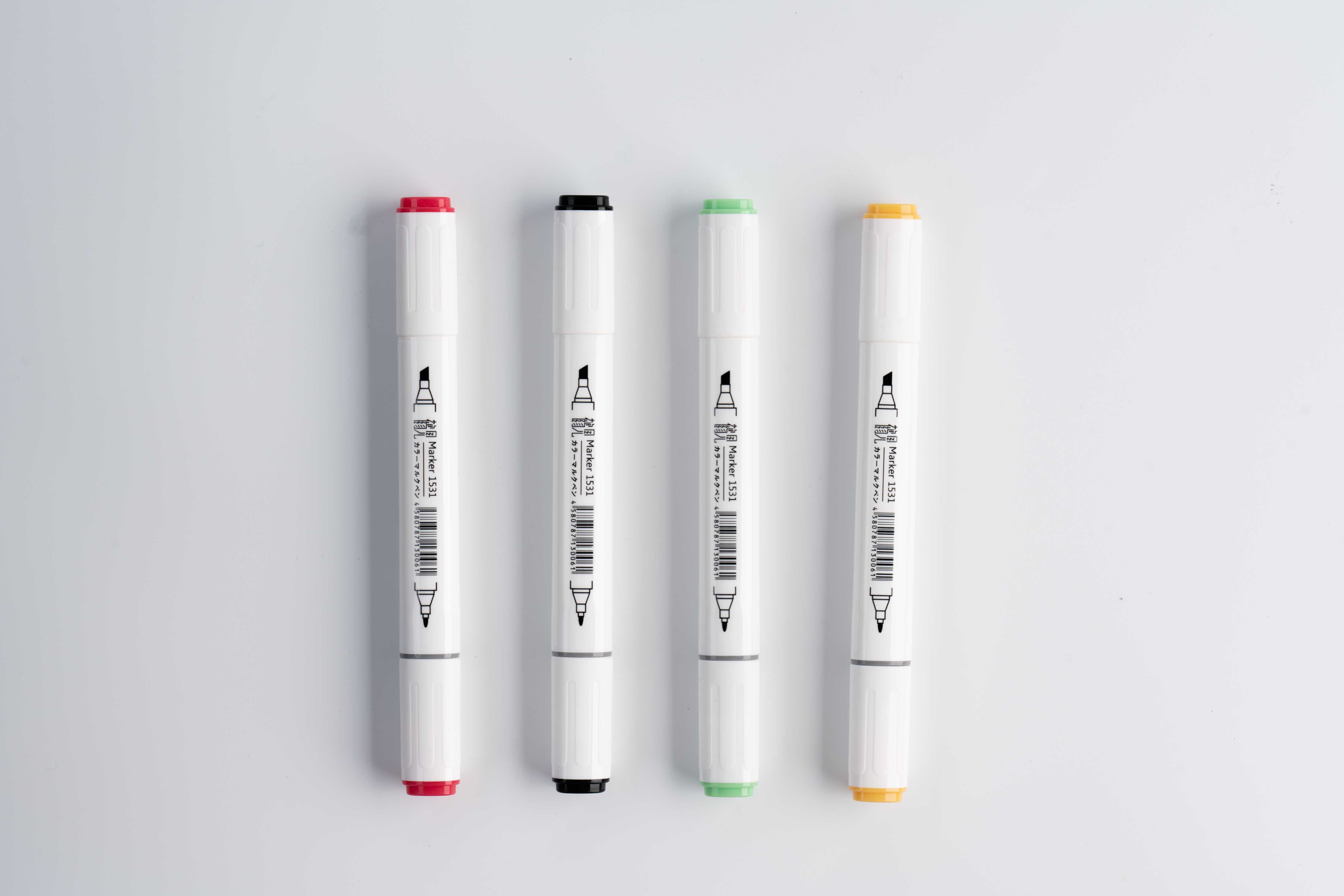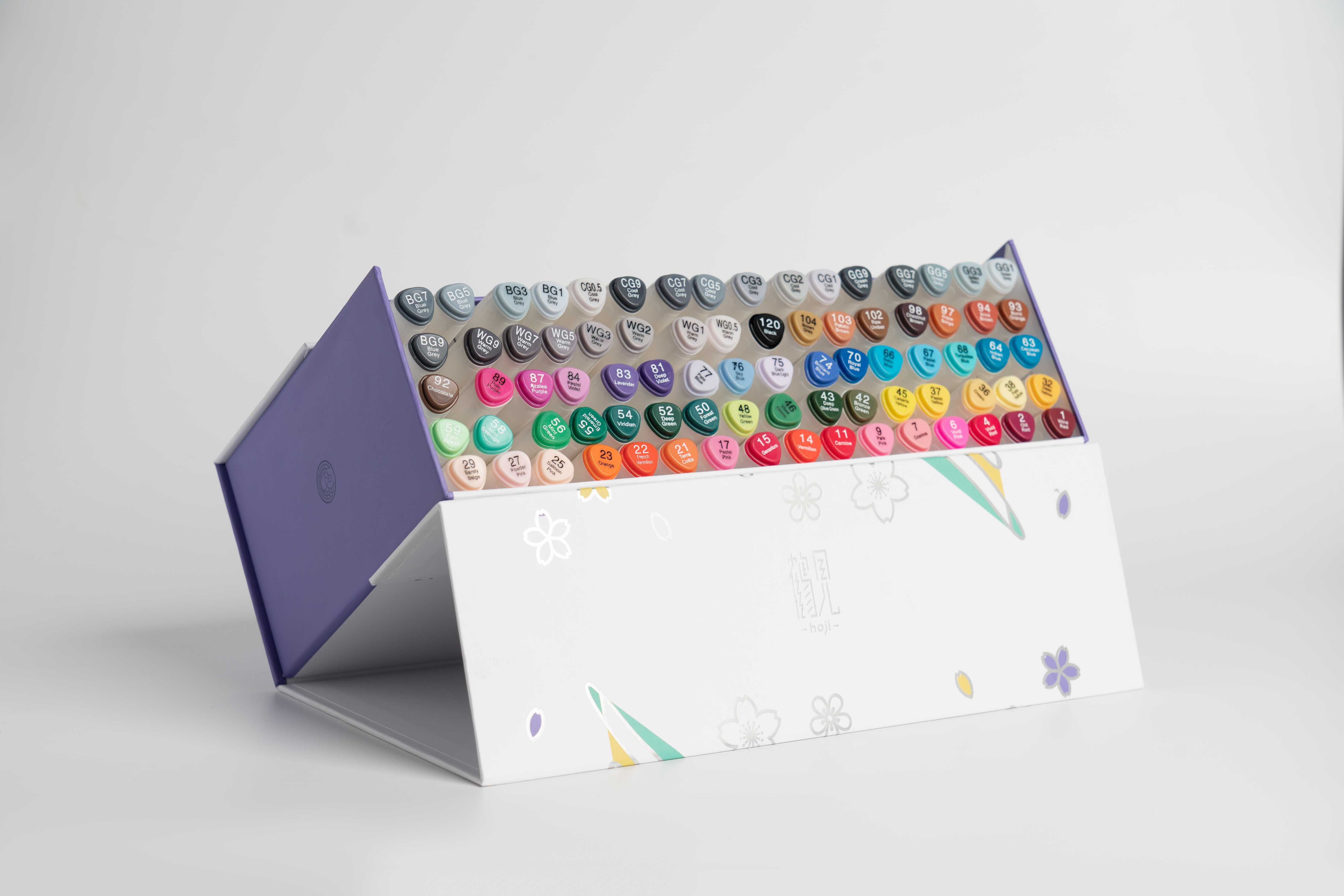 采用方便抓握的三角杆设计。双头 (刀头、圆头) 设计,适应不同的设计需求。采用油性墨水,防水,速干,表现力超强。在顶部标有色号方便使用。